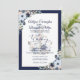 Magnifique faire-part de mariage à thème nautique, côtier ou plage avec ancre florale aquarelle et bouquets floraux dans les couleurs bleu marine, blanc et rose poussiéreux, typographie script de calligraphie et une bordure dorée et bleu marine champagne sur le devant. L'arrière comporte les initiales monogrammes du couple et ancre contre un arrière - plan en marbre bleu. AIDE : Pour obtenir de l'aide sur la modification/personnalisation de la conception ou le transfert de la conception à un autre produit ou si vous souhaitez coordonner des éléments, contactez le concepteur AVANT DE COMMANDER via Zazzle Conversation ou makeitaboutyoustore@gmail.com.