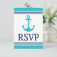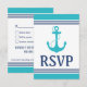 Mariage RSVP avec ancre coeur bleu ciel et rayures bleu marine.