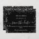 Un moderne et élégant Save the Date pour un mariage. Un arrière - plan noir décoré de parties scintillant faux argenté. brille. Personnalisez et ajoutez une date et des noms. Le texte : Save the Date est écrit avec un grand script de style à la main tendance.
