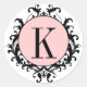 Mariage noir blanc Monogram K Damask Étiquette ros