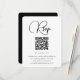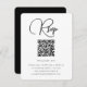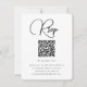 Cette carte de réponse mariage moderne dispose d'un emplacement pour votre code QR afin que les invités puissent facilement s'afficher sur votre site mariage. L'avant présente un design noir et blanc simple et épuré avec typographie de script en lettrage tendance. Le dos minimal est noir solide.