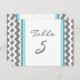 Elégante et moderne turquoise bleu, gris fusain foncé et blanc mariage carte numéro de table avec rétro et amusant chevron zigzags motif. Customisez ces cartes pour créer des cartes numériques personnalisées pour chaque table de votre mariage. Motif disponible dans une large gamme de produits mariages correspondants.