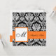 Mariage orange Monogram Damask Invitation. Papier à lettres mariage correspondant disponible dans cette galerie.