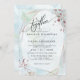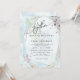 FAIRE-PART DE MARIAGE | Jaspé peint à la main dans des tons pastel de bleu pâle poussiéreux et accentué avec des touches de vert sauge clair - accentué avec des nuggets d'or rose aux angles et un cadre de style cristal en or rose avec un centre blanc clair soulignant le texte de l'invitation. Le texte manuscrit calligraphie sur la diagonale "ensemble" en haut permet un chaleureux attrait personnel - facile à personnaliser le modèle.