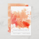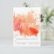 Abstraite moderne aquarelle corail pêche mariage RSVP réponse/réponse carte avec une peinture à l'aquarelle peinte à la main avec texture dans les tons de corail orange et pêche, feuilles d'érable en blanc avec veines de corail et texte en blanc et gris. Cet élégant design décontracté mariage est un modèle entièrement personnalisable, idéal pour votre mariage de printemps, d'été ou d'automne. Notez qu'il ne s'agit que d'une image d'aquarelle et non d'une texture réelle. Pour de meilleurs résultats, choisissez feutre ou autre papier.