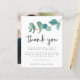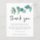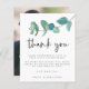 Merci Mariage bleu Turquoise Eucalyptus Budget. Un prix économique PETIT 4,5 po x 5,6 po alternatif. Disponible dans un STOCK SEMI-GLOSS 110 lb CARD qui est l'option par défaut (plus épais pour les invitations), OU un STOCK SATIN FINISH 80 lb THINNER PAPER (idéal pour les boîtiers). Les enveloppes sont en option et légèrement plus grandes que la taille de la carte. Style minimaliste moderne avec une seule branche de feuilles d'eucalyptus bleus turquoises de l'autre côté de la page du côté gauche. Le Merci est mis dans un style d'écriture informelle et est placé sous le feuillage avec votre message et les noms que vous pouvez facilement personnaliser. Échangez facilement votre photo préférée au dos comme souvenir pour vos invités. Vous pouvez modifier les couleurs de texte et d'arrière - plan à n'importe quel de vos choix pour correspondre à votre thème de couleur mariage.