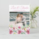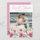 carte de remerciements photo mariage amour et grâce au design floral jaune rose, jolies fleurs avec script élégant. Nom, date et information de la Personnaliser.