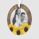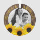 Mariage photo en bois rustique et en tournesol jaune, à l'exception de l'ornement de la date. Ce mariage photo, à l'exception de l'ornement date, est adorable pour un mariage d'été ou d'automne / d'automne. Les ornements sont un plaisir à sauver la date. Inclure-les avec votre annonce de date comme étant des actions de conservation. Fleurs de tournesol jaunes rustiques associées au arrière - plan bois/grain de bois. Personnalisé avec vos noms et votre photo fiançailles.