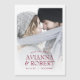 La photo de votre couple est en vedette. Une superposition blanche transparente est ensuite placée sur le dessus pour vous assurer que les détails de votre mariage sont visibles - quelles que soient les couleurs de votre photo. Vos noms sont écrits dans un grand texte chic pour les rendre vraiment pop. Enregistrer la date est écrit dans une petite police incurvée ci-dessus et votre date et emplacement mariage ci-dessous.