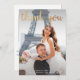 Ce carte de remerciements photo mariage en or est un excellent moyen de faire connaître à vos amis et votre famille combien vous les appréciez. L'avant de la carte est conçu pour présenter votre photo d'orientation verticale préférée, avec les mots "merci" en haut dans un joli type de script de superposition de feuille d'or mat, et vos noms, date mariage et emplacement en bas. Le dos de la carte vous permet de taper un message d'accueil personnel, et dispose également d'une photo encadrée d'orientation horizontale/paysage. Il y a un filtre noir et blanc qui lui est appliqué, vous êtes donc libre d'utiliser votre photo préférée et il s'imprime en noir et blanc. Il s'agit d'un design modèle, et il est très facile de customiser pour répondre à vos besoins. Copyright Anastasia Designs, tous droits réservés.