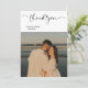 Mariage simple et moderne merci carte recto-verso modèle avec un texte qui dit merci! en écriture manuscrite en haut. Vous pouvez ajouter une deuxième image au dos de la carte ainsi qu'un message modifiable. Parfait pour les minimalistes qui veulent que leurs photos soient le point central de leur carte de remerciements.