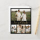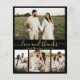 Budget, Moderne, Élégant, Mariage Lettré à la main Four (4) Photo Collage Carte de remerciements en noir et or. Élégant modèle mariage avec 4 photos sur le devant et une photo sur le dos. Avec le texte "Amour et merci" dans une tourbillonnant écriture typographique script swash-tail police en couleur or sur l'arrière - plan noir. Personnalisez le nom personnalisé et le message de remerciement. Petit coeur entre les noms. Si vous préférez écrire votre note à la main, supprimez simplement l'exemple de texte. Si vous avez besoin d'aide ou d'un article correspondant, veuillez contacter le concepteur !