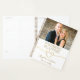 Simple, élégant, minimaliste, planificateur de mariage blanc au cœur de corde en feuille d'or avec photo de couple.