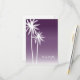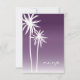 Un rsvp unique de mariage de plage avec une illustration de deux palmiers blancs à gauche sur un arrière - plan violet sombre.