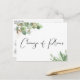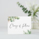 Si les circonstances vous obligent à réduire la taille et le nombre d'invités à votre mariage, vous pouvez informer votre liste de personnes initialement invitées avec cette belle et moderne carte d'annonce de mariage plus intime et réduite, qui présente de délicates aquarelles de feuilles d'eucalyptus vert clair avec des accents dorés et "Changement de plans" écrit dans un style élégant sur le devant. Au verso, vous pouvez facilement personnaliser le message de réduction de mariage avec plus de détails et ajouter toute information relative à la diffusion en direct de la cérémonie, aux célébrations futures et au site web du mariage.