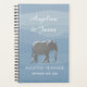 Élégant, moderne, simple, livre de planification de mariage bleu poussiéreux à l'aquarelle avec silhouette d'éléphant argenté.