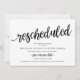 Ceci est une carte d'annonce de mariage reporté, avec titre de carte, nouvelle date, en police de caractères noire, thème design rustique moderne.