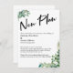 La distinction de cette suite est due à la police manuscrite audacieuse et décontractée utilisée pour les phrases clés, et aux accents d'eucalyptus en aquarelle verte. Si vous êtes dans la position de devoir informer vos invités de mariage que vous avez dû changer la date de votre grand jour, voici une option audacieuse. Dans ce modèle, la police de caractères script moderne a été utilisée pour créer un graphique simple représentant le mot "Nouveau Plan". Utilisez les champs de modèle pour ajouter vos informations personnelles et rendre ce design moderne vôtre. Le fond blanc peut être changé en n'importe quelle couleur de votre choix. N'hésitez pas à nous contacter pour toute demande spéciale ou pour une aide à la personnalisation. // 111 //