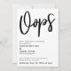 La distinction de cette suite est due à la police de script manuscrite décontractée et audacieuse utilisée pour les phrases d'accent. Si vous êtes en position de devoir informer vos invités mariages que vous avez dû changer votre grand rendez-vous, voici une option humoristique. Dans cet article, la police de caractères manuscrite a été utilisée pour créer un graphique simple représentant le mot "Oops". Utilisez les champs modèles pour ajouter vos détails personnels et faire de ce design moderne votre propre. L'arrière - plan blanc peut être changé à n'importe quelle couleur que vous préférez. Veuillez communiquer avec toute demande spéciale ou customiser de l'aide. // 105 //
