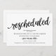 C'est une carte d'annonce de mariage reporté, avec titre de carte, nouvelle date, en police de caractères noire, thème design rustique moderne.
