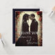 Une mariée et un marié vêtu d'une tenue mariage noire époustouflante sont encadrés par des roses. Cette scène saisit romantisme, élégance et passion, un moment inoubliable rempli d'amour et de beauté intemporelle. Carte de remerciements
