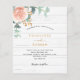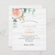 Bois blanc comme arrière - plan. Décoré d'or rose et de fleurs roses rousses, de fleurs roses et de feuilles d'eucalyptus vert aquarellés, de sprigs, de verdure et d'une fausse feuille d'or. Personnalisez et ajoutez vos noms et les détails du mariage. Lettres noires et dorées. 1 feuille = 1 invite imprimé bord à bord.
