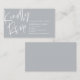 Voici notre carte RSVP Mariage Elégance Moderne - le parfait mélange de sophistication et de simplicité. Conçue pour le couple contemporain, cette carte RSVP présente un script épuré et minimaliste, et une touche subtile de luxe pour confirmer la présence de leurs invités. Le design épuré vient compléter le thème du mariage gris frais, ajoutant une touche de classe à votre suite papeterie. Assurez-vous que votre journée spéciale est soigneusement planifiée avec notre carte RSVP élégamment moderne - un souvenir intemporel pour vous et vos invités. Conçu par TeeshaDerrick