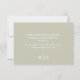 Ce design comprend une carte rsvp mariage, avec un style simple élégant, un code QR scannable, avec script de calligraphie, réponse simple, avec des détails du site et en ligne, avec typographie chic, et vert sage, vert
