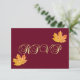 Cartes de réponse de mariage élégantes et modernes avec topographie dorée et marsala bordeaux. Feuilles métalliques orange doré. La couleur de fond peut être modifiée. Modèles modifiables - ajoutez votre texte. Contactez le designer pour d'autres variations. Trouvé dans la collection de mariage 'TOMBER AMOUREUX'.