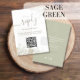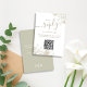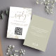 Ce design comprend un code QR pour les mariages, vos invités peuvent RSVP en ligne avec cette carte de boîtier minimale, un vert simple et sage, avec notre site Web, budget réponse RSVP