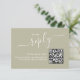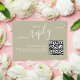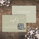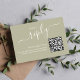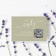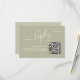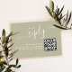 Cette conception comprend un code QR simple, RSVP, carte de boîtier mariage, avec un vert sage minimal élégant, un boîtier simple, une réponse RSVP budget, et notre site Web.