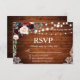 Carte RSVP Russe Mariage Bois Lumières Dentelle Aquarelle Bourgogne Marsala Bleu Floral