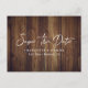 Mariage rustique simple, enregistrez la carte postale date avec un arrière - plan en bois de grange.