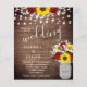 Cette conception de mariage abordable présente un vase en bocal mason rempli de roses rouges, de tournesols et de baby's breath sur un fond en bois rustique avec des lumières de chaîne. Cliquez sur le bouton personnaliser pour plus de flexibilité dans la modification du texte. Des variations de cette conception, différents types de papier, ainsi que des produits de coordination sont disponibles dans notre boutique, zazzle.com/store/doodlelulu. Contactez-nous si vous avez besoin de cette conception appliquée à un produit spécifique pour créer votre propre article assorti unique ! Merci beaucoup d'avoir consulté un design de DoodleLulu by 2 june bugs !