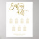 Tableau de sièges mariage avec effet feuille d'or (faux, imprimé comme image) et texte de script personnalisable - vous pouvez ajouter le nom de la mariée et du marié, la date du mariage et les noms des invités (7 tables avec 8 invités chacun). Les dimensions de l'affiche sont de 18 pouces sur 24 pouces.