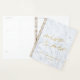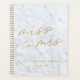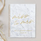 Carnet de mariage personnalisé pour la mariée avec un design de calligraphie moderne "Mademoiselle à Madame" sur fond de marbre gris.