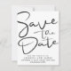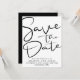 Simple Mariage Noir Et Blanc Enregistrer La Carte Date. Caractéristiques de conception de ''Save The Date''' dans une police manuscrite moderne et vos détails sur l'arrière - plan blanc. Le dos de la carte est noir profond et il ya une boîte pour des informations supplémentaires comme l'adresse du site Web etc.