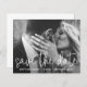 Enregistrer la date de mariage avec votre photo horizontale en plein champ avec une superposition de typographie avec les mots "enregistrer la date" dans une fine police de caractères cursive blanche. En dessous, une ligne de texte pour les détails de votre mariage.  Le verso comporte les mots "invitation à suivre" dans la même police de caractères et peut être supprimé en cliquant sur le bouton "personnaliser". Un design simple et élégant qui fait de votre photo l'élément principal.