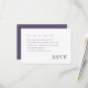 Cette carte de réponse mariage minimaliste de typographie violette moderne comprend un emplacement pour votre code QR afin que les invités puissent facilement s'afficher sur votre site mariage.