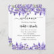 Arrière - plan blanc élégant, décoré de fleurs de lavande, fleurs. Personnalisez et ajoutez vos noms et votre calendrier de mariage. Vous pouvez réduire la taille de la police et l'espacement des lignes si vous avez besoin de plus de texte. Vous pouvez également ajouter du texte au verso.