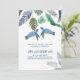 De adorables tortues de mer et des feuilles tropicales figurent sur cet article de mariage sur le thème de la plage et de la vie marine moderne, qui fait partie d'une collection plus vaste. Le thème de couleur ici est le bleu et le jaune vibrant.