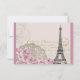 Un élégant RSVP à l'ancienne pour les mariages ou autres événements. Un collage vintage fantaisiste qui a un vieil arrière - plan de carte postale française avec un croquis de tour eiffel et quelques fleurs sauvages roses et blancs en bordure du fond. Des ornements tourbillonnant soignés ornent les côtés. Une bordure en or avec un revêtement semi-transparent au centre pour une écriture lisible facile.