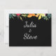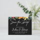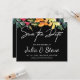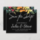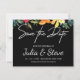 Élégant enregistrer la carte date dispose de belle citron, orange, vert floral avec la typographie manuscrite blanche sur arrière - plan noir. Envoyez cette carte de fleurs d'aquarelle moderne à votre famille et vos amis. Personnalisez ceci avec les noms des mariés et des mariés et la date du mariage. Si vous aimez ce design sur un autre produit, contactez-nous à karuna@karunaskreations.com .