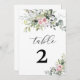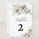 Numéro de table de Mariage rose vif verdoyant. Trouvez les articles correspondants dans la collection Aquarelle Eucalyptus Blush Pink Green Collection.