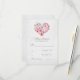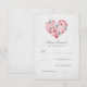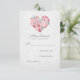 Elégante carte de réponse de mariage vintage avec fleurs roses amour coeur.