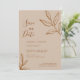Invitez vos amis et proches à une célébration de mariage virtuelle avec cette invitation simple et chic à sauvegarder, caractérisée par une palette de couleurs terracotta et un design de feuilles esquissées. Personnalisez-la avec vos propres détails de mariage.