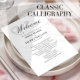 Un programme de cérémonie Mariage simple feuille de papier modèle. une lettre d'accueil de mariage élégant programme simple minimaliste, un modèle de cérémonie noir et blanc, une typographie de script de calligraphie classique, écriture manuscrite script typographie, calligraphie classique élégant, programme personnalisé customisé, service de cérémonie mariage classique, programme de commande, programme de mariage mariage, programme de fête de mariage