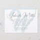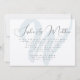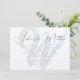 Modèle unique et moderne de cérémonie mariage invitation avec grand arrière - plan initial. Un design simple avec un script écrit à la main pour les prénoms en haut des cartes horizontales plates. Le nom complet du couple peut être inclus dans le texte imprimé si vous le souhaitez. Il y a suffisamment de lignes pour inclure une adresse de réception. Thème de conception neutre avec texte noir sur papier blanc - illustré sur une mise à niveau de papier texturé. Le côté initial et l'envers sont clairs, gris-bleu.