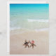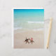 Papier vierge imprimable de mariée et marié étoile de mer pour imprimer vos propres invitations ou notes. Une scène de plage d'eau océanique bleue et de sable couvre le fond avec deux étoiles de mer se tenant la main en bas.