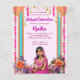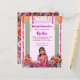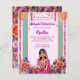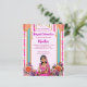 Mehndi Inde mariage invitation budget modèle avec une caricature de mariée mignonne en tenue rose et fleurs roses.